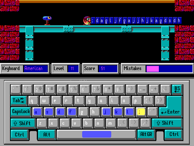 The game combines colorful graphics and playful animations to create a captivating environment. Players navigate through various levels, each crafted to improve their typing skills through interactive challenges. As players progress, the difficulty gradually increases, introducing new letters and common words. The interactive feedback and rewards system encourages continued learning and improvement.