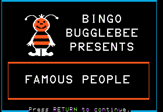 Bingo Bugglebee Presents: Famous People is a classic trivia video game celebrated for bringing the excitement of quiz competitions to home entertainment systems. Set in a fun and vibrant atmosphere, players are transported into an engaging world where they test their knowledge of historical and contemporary figures.