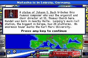Released in 1990 by PC Globe Inc., this puzzle exploration game invites players to travel the globe in search of various treasures and artifacts. Players navigate through different geographical locations, aiming to collect items such as charms, ships, and eggs, contributing to an adventurous and educational gameplay experience.