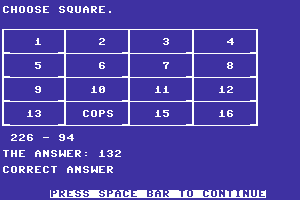 Released in 1985, this game brought a unique twist to the traditional police-vs-robbers theme by incorporating educational elements targeted towards improving mathematical skills, particularly subtraction. This arcade-style game was primarily designed for young audiences, aiming to make learning engaging and entertaining.