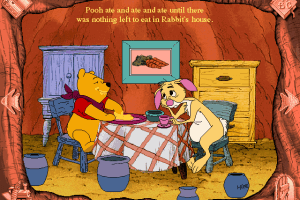 The game follows the classic tale of Winnie the Pooh and his adventures to find honey. It offers an engaging experience with animated sequences and interactive elements, allowing children to participate in the story by clicking on various objects, which trigger different animations or sounds. This encourages exploration and provides a fun way to interact with the narrative.