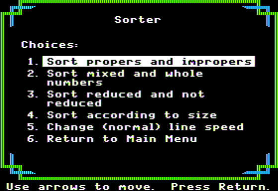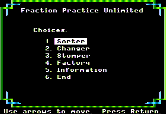 This game became a favored tool among educators seeking to provide a fun, interactive means for students to practice and reinforce their understanding of fractions. Its effectiveness in blending learning with gaming made it a popular choice in the late 80s for school computer labs.