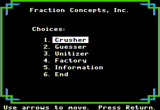 Released in 1987, Fractions Concepts, Inc. is an educational video game designed to engage young players in learning mathematics, specifically focusing on fractions. The game serves as an interactive tool for both teachers and students, aiming to solidify the foundational concepts of fractions through fun and engaging gameplay.