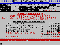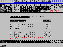 The 1982 video game developed by Simon Hessel Software introduces players to a strategic gameplay experience. Set in the context of managing various aspects of a nation, the game challenges users to effectively govern and make decisions that impact the overall prosperity and functionality of the entity they oversee.