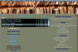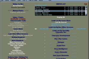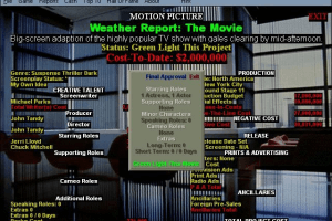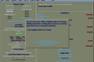 The game involves strategic decision-making, where players must balance budgets, hire directors and talent, and navigate the intricacies of film production to create successful movies. Players have the option to choose scripts, set production schedules, and influence various details of each film to maximize profitability and critical acclaim.