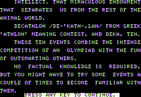 Released in 1984, ‘Intellectual Decathlon’ is a trivia-based video game that challenges players across various categories of knowledge. This game tests players’ intellectual skills through a series of quizzes and problem-solving exercises, allowing them to engage in a wide range of topics.