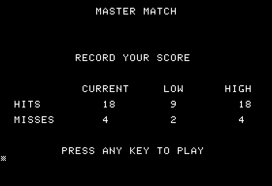 Developed during the early 1980s, this game is a testament to the roots of educational software. During this era, there was a burgeoning interest in using computers for educational purposes, and companies like Educational Information Systems, Inc. were at the forefront of this movement. Master Match exemplifies the innovative approach taken by developers to harness the power of video games for learning.