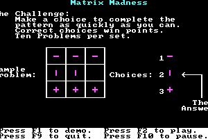 Matrix Madness, released in 1984, is an intriguing entry into the world of early video gaming. With its pixelated graphics and simple yet engaging gameplay, the game embodies the spirit of the era. Although it may not have gained a significant foothold in the annals of gaming history, it offers a nostalgic glimpse into the past for enthusiasts of retro gaming.