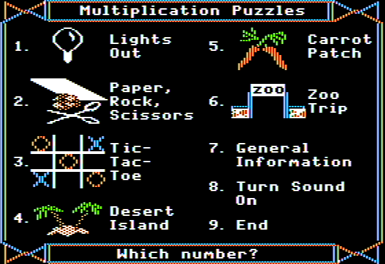 The 1985 release of Multiplication Puzzles was a unique blend of educational content and engaging gameplay aimed at reinforcing basic arithmetic skills. Developed for early home computer systems, this game presented players with a series of challenging puzzles that required leveraging multiplication skills to progress through levels.