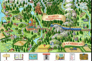 The game functions as an interactive atlas, allowing children to learn about different countries, cultures, and geographical features. Players can interact with a world map and explore various regions by clicking on them, uncovering facts and information about each location. It includes a variety of multimedia elements such as animations, sound clips, and photographs, aimed at providing an engaging learning experience.