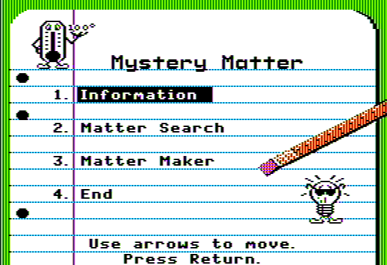 While Mystery Matter did not achieve widespread fame, it is remembered by enthusiasts of retro gaming for its distinctive approach to storytelling and its challenging gameplay mechanics. It stands as an example of the innovative spirit of game developers in the late 1980s, who were exploring new ways to engage and entertain players through interactive entertainment.