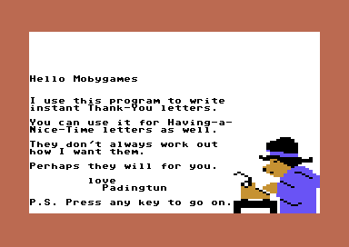 Though not a groundbreaking title, it contributed to the early wave of character-based games that sought to bring beloved storybook characters into the interactive medium of video games. It remains a cherished piece of gaming history for fans of Paddington Bear and early video game enthusiasts.
