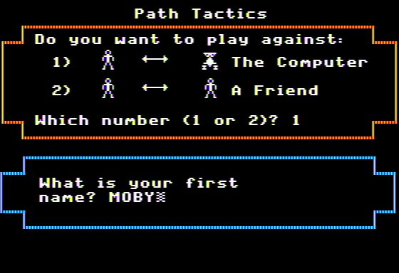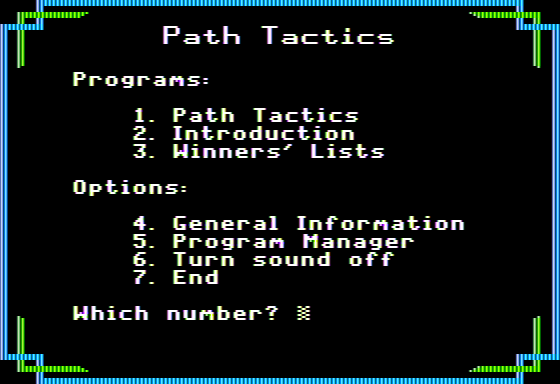 The 1984 video game ‘Path Tactics’ is a strategic board-like game that challenges players to navigate and conquer a grid-based map. Set in a fantasy realm, it requires players to employ both tactical skills and forward-thinking to overcome various obstacles and opponents.