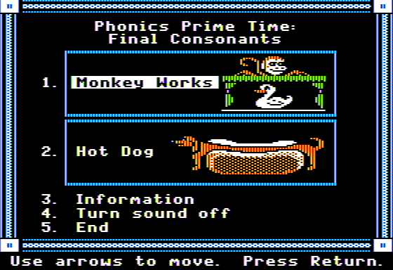 Released in 1986, this educational game was designed to help young learners master the pronunciation and use of final consonants in the English language. As an entertaining tool in the realm of early learning video games, it offers engaging activities that focus on phonetic recognition and auditory discrimination, supporting language development for children.