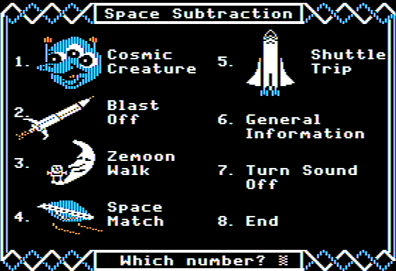 I’m sorry, I couldn’t find any information about a video game titled “Space Subtraction” released in 1985.