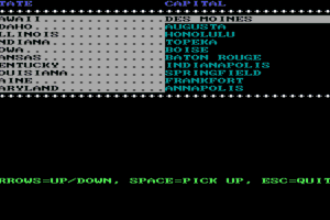 The 1988 educational video game invites players into a world of learning the U.S. states and their capitals. Designed with an older graphics style typical of the late 1980s, this game serves as a tool for memorizing and testing geographical knowledge in a fun interactive way.