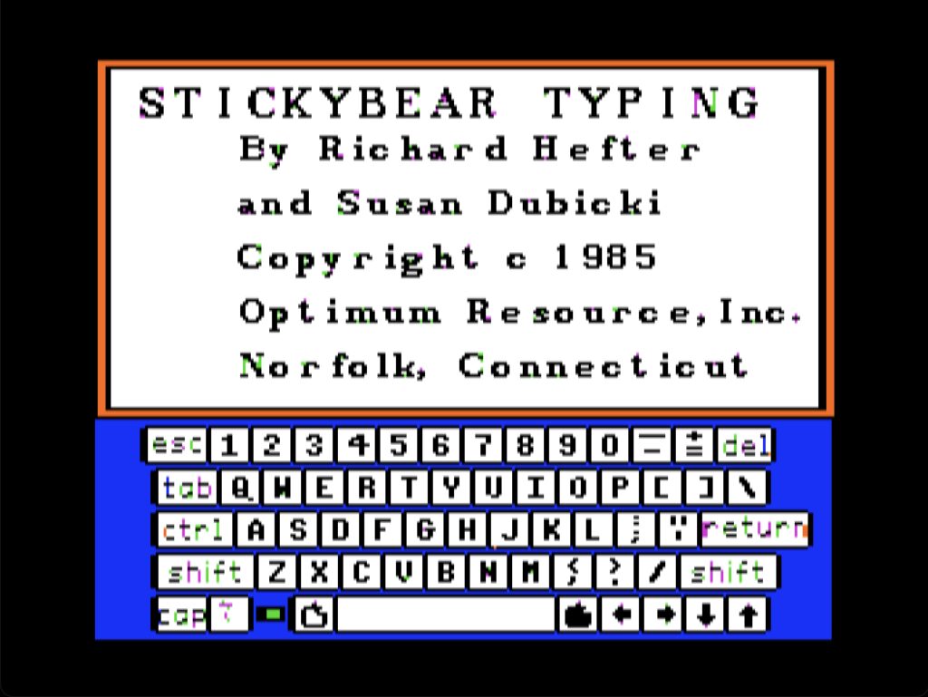 Stickybear Typing is an educational video game released in 1985, developed by Optimum Resource, Inc. The game was designed to teach typing skills to children and was part of a larger series of educational titles featuring the Stickybear character. These games were popular tools used in schools to enhance various learning skills.