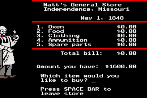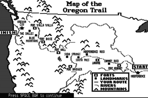 In the game, players assume the role of a 19th-century pioneer leading a group of settlers traveling by covered wagon from Independence, Missouri, to the Willamette Valley in Oregon. The game challenges players to manage limited resources like food, clothing, and ammunition while navigating through various hazards such as treacherous river crossings, unpredictable weather, and health issues including dysentery and broken limbs.