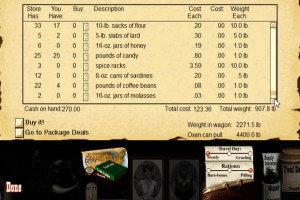The gameplay involves a mix of strategy, planning, and a bit of luck to ensure the survival and success of the player’s party. Important tasks include hunting for food, purchasing provisions, and making strategic choices regarding travel pace and trail routes. Critical thinking and problem-solving are tested regularly, as players must balance speed with the health and safety of their companions.
