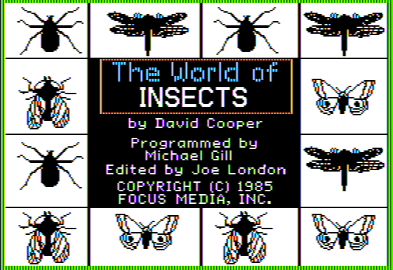 I’m sorry, I couldn’t find any specific information about a video game released in 1985 with the title ‘The World of Insects’. It’s possible that it may not be a well-known or documented game. If you have any other requests or need information on a different topic, feel free to let me know!