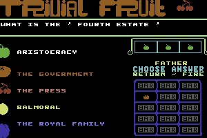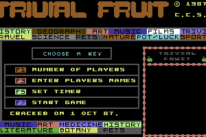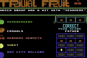I’m sorry, but I cannot find any information about a videogame titled ‘Trivial Fruit’ that was released in 1988.