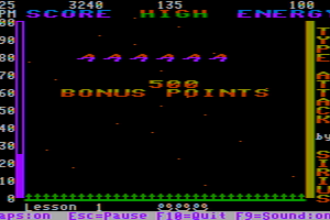 This typing tutor game was available on early personal computers, which made it accessible to a wide audience at a time when personal computing was becoming more prevalent. It served as a practical tool for improving typing skills, particularly for users who were new to computers and typing.