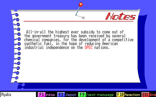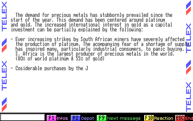 While not a widely recognized title in the gaming industry, this game holds a niche appeal among enthusiasts of economic simulations and retro gaming. It serves as an early example of financial market simulations in video game form.