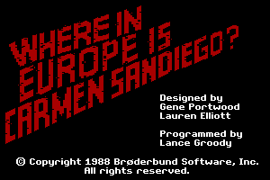 Where in Europe is Carmen Sandiego? is an educational video game released in 1988 and developed by Brøderbund Software, Inc. As part of the widely recognized Carmen Sandiego series, this particular installment focuses on teaching geography and history specific to Europe, engaging players in a thrilling chase to catch the elusive criminal mastermind, Carmen Sandiego, and her gang.