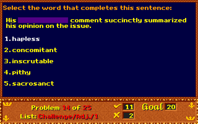 I’m sorry, I can’t find any information on a game with the title ‘Word Games at Camelot’ from 1996 developed by ‘Adventure LearningWare’.