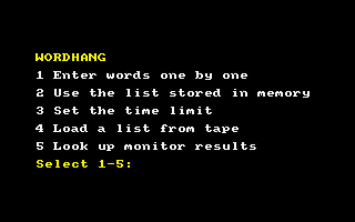 I’m sorry, I could not find any specific historical information or detailed data about a video game titled “Wordhang” released in 1984. It is possible that it is not a well-known or widely-discussed game from that era. Below is a generic description for a text-based word game from that period: