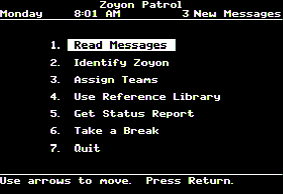 I’m sorry, but I couldn’t find specific information on a video game titled ‘Zoyon Patrol’ released in 1987. If you have another title or more context, I might be able to help further!