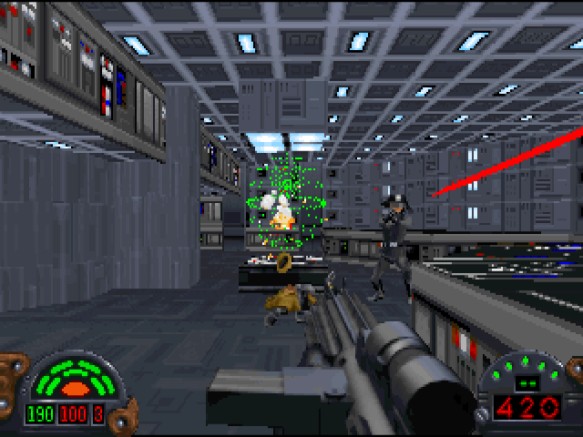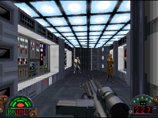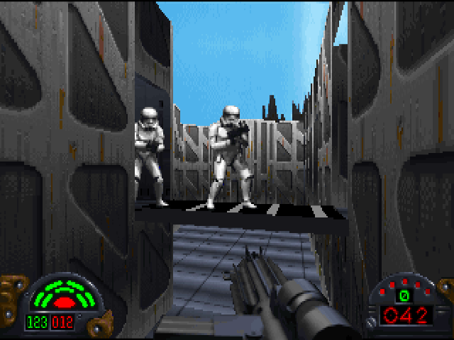 Players navigate through various levels, engaging in combat with Imperial troops and solving tactical puzzles. The game features a range of weapons and equipment, including a blaster pistol, thermal detonators, and the infamous Stormtrooper armor. The level design is more intricate than many shooters of its time, offering multiple paths to objectives and incorporating interactive environments.
