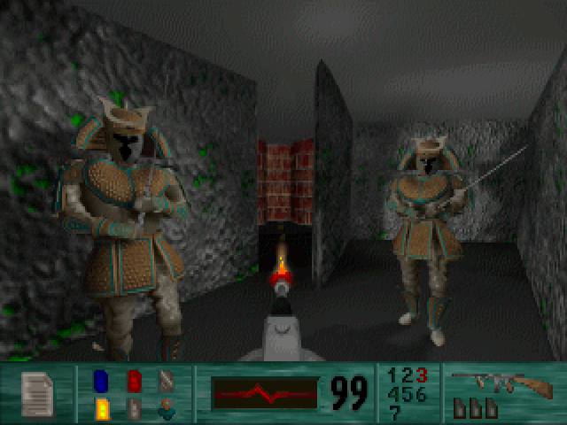 Players navigate through various levels filled with enemies and obstacles, using a range of weapons to defeat adversaries. The objective is to progress through the fortress, overcoming challenges and uncovering secrets.