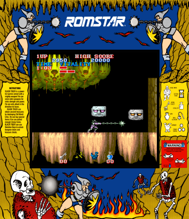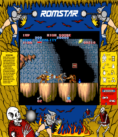 Black Tiger is a classic side-scrolling arcade game known for its challenging gameplay and intricate level design. With vivid 16-bit graphics and an engaging fantasy theme, players are introduced to a world where they must take on the role of a fearsome barbarian warrior.