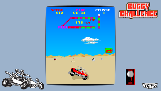 Released in 1984, this arcade game is a racing title developed by Taito Corporation under a Tecfri license. The game immerses players in the thrilling world of off-road buggy racing, where speed, agility, and precise control are key to victory. Players must navigate through challenging terrain, avoiding obstacles and racing against time to advance to the next level.