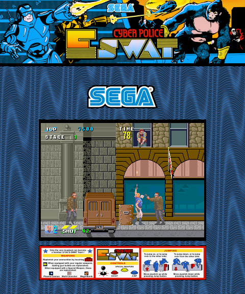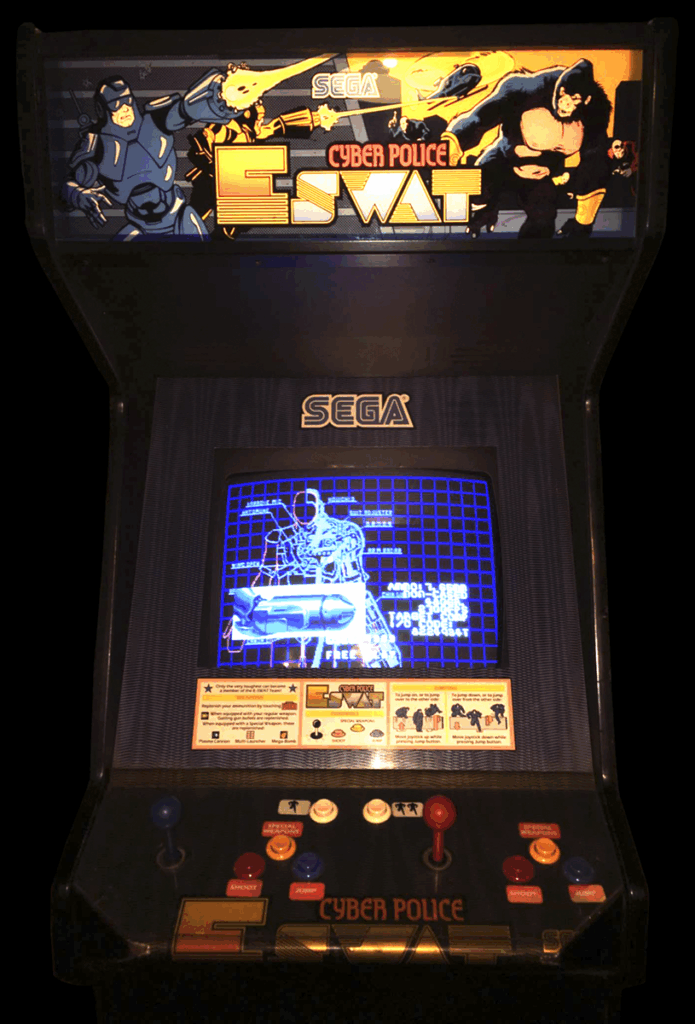 Released in 1989 and developed by Sega, this arcade game transports players into a futuristic world. The game is set in a city overrun by crime, where players assume the role of a regular police officer. As the game progresses, this officer rapidly ascends the ranks to become a part of the elite “Enhanced Special Weapons and Tactics” (ESWAT) team, tasked with neutralizing the criminal elements threatening peace.
