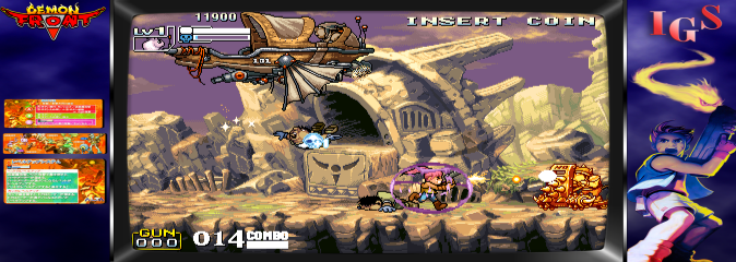 Demon Front / Moyu Zhanxian is a side-scrolling shooter arcade game developed by IGS (International Games System) and released in 2002. Known for its fast-paced action and cooperative gameplay, it bears resemblances to other classic games in the run-and-gun genre, providing a familiar yet exciting experience.