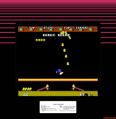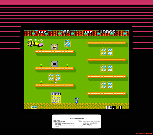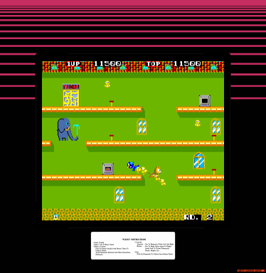 Released in 1984 by Sega, this arcade platform game challenges players with guiding a small blue bird through various levels. The objective is to safely collect and reunite chirping chicks scattered throughout the game environment while avoiding enemies such as cats and lizards.