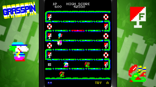 Staying true to its era, the game’s graphics are characterized by simple yet vibrant pixel art that adds a nostalgic charm. The sound design complements this with catchy, chiptune music that enhances the overall arcade atmosphere and brings a sense of immersion.