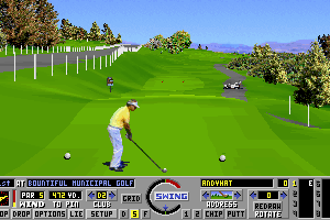 Players can enjoy a single-player mode where they can simulate a full round of golf, competing against the computer or practicing holes to improve their techniques. The mechanics involve selecting clubs, planning shots, and adjusting swing speed, offering a high level of control typical of the era’s simulation games.
