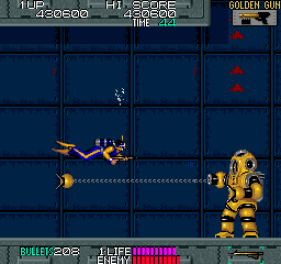 Released in 1989, this action-packed arcade title was developed by Data East USA. This game combines elements of espionage and high-octane side-scrolling action, allowing players to don the role of a secret agent tasked with stopping a nefarious organization bent on world domination.