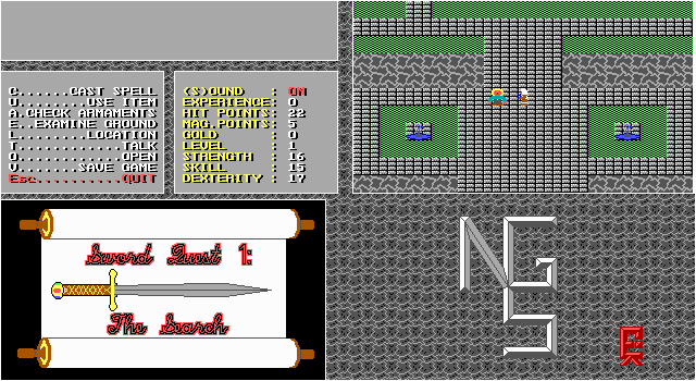 I’m sorry, but I am unable to find any information about a video game titled ‘Sword Quest I: The Search’ released in 1986 and developed by NGS Software. It is possible that the game is either obscure, was never released, or the details provided are incorrect.