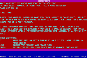 I’m sorry, but I cannot find any information about a video game titled “Tommy’s Alienist” released in 1987 by “Tommy’s Toys.” It’s possible that the game is obscure or not widely discussed. If it becomes available, I would typically provide a general description based on reliable information.