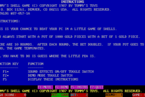 Released in 1987, this intriguing video game was developed by Tommy’s Toys, a developer known for creating unique and engaging games during the 1980s. In this game, players are challenged to keep track of objects hidden under moving shells, testing their memory and observation skills.