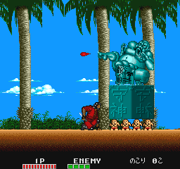 The game features three selectable characters: a warrior, a martial artist, and a ninja, each with distinctive abilities. Players traverse through a series of levels battling an assortment of unusual foes including samurai, pharaohs, and robots. The game is renowned for its unpredictable elements, such as abrupt changes in level aesthetics and offbeat power-ups.