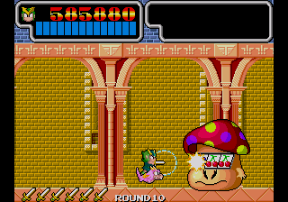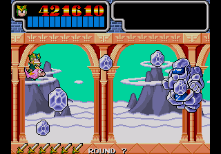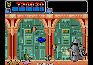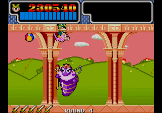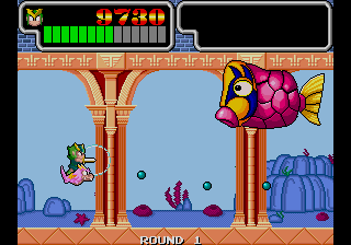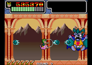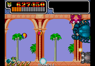 The graphics of the game are notable for their lush color palette and detailed animations, characteristic of the late 1980s arcade style. The soundtracks and sound effects complement the gameplay, providing an immersive experience that enhances the fast-paced action.