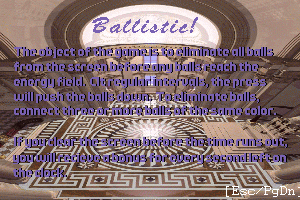 Ballistic is an action-packed shooter game that emerged during the mid-90s, showcasing the vibrant and competitive spirit of the gaming industry at the time. Leveraging the technological advancements of the era, it offered players an engaging and fast-paced experience that was a hallmark of arcade and PC games of its period.