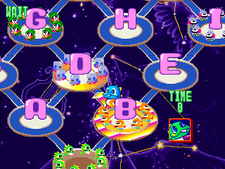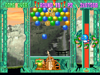 Bust-A-Move 3 is characterized by its vibrant and colorful visuals, with bubble designs that pop against the vivid backgrounds. The audio complements the action well, featuring catchy tunes and sound effects that enhance the fast-paced nature of the gameplay.