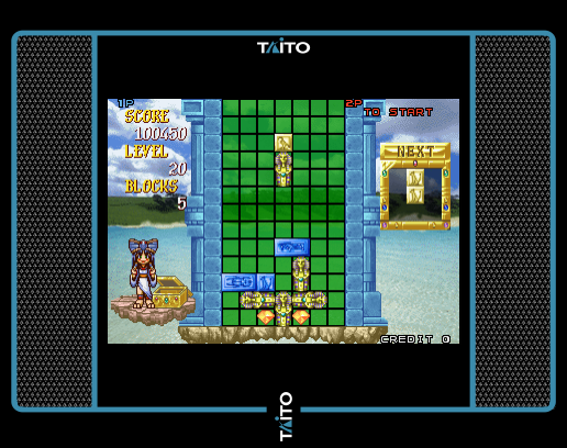 The game is a puzzle video game developed by Taito Corporation, released in 1996. The game is set in ancient Egypt and features a unique blend of block-dropping mechanics and archaeological themes. Players must arrange falling blocks to entomb various treasures and artifacts, clearing lines and saving the ancient relics from being crushed.