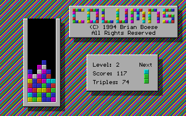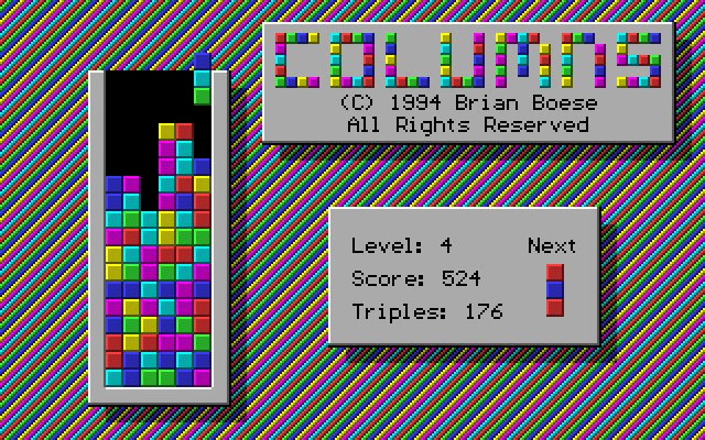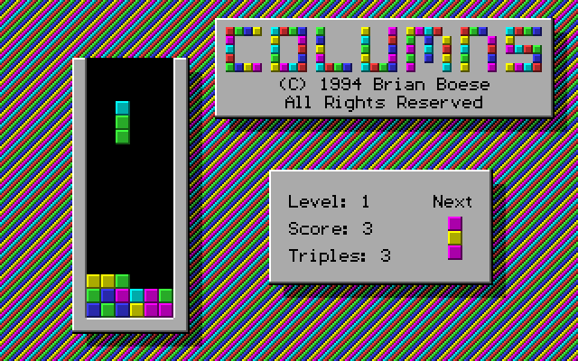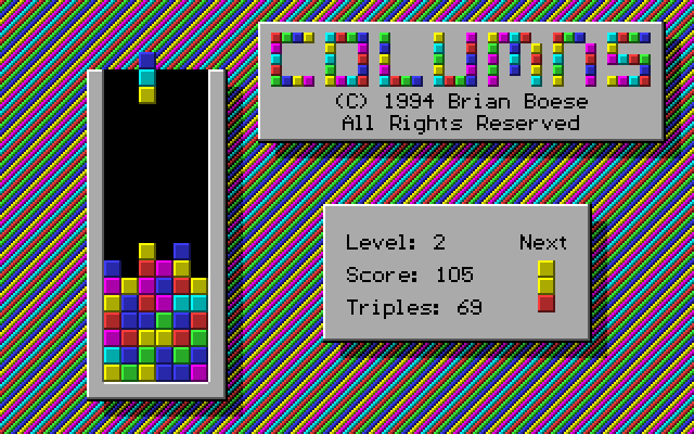 Developed by Brian Boese and released in 1994, this game is a classic puzzle game that challenges players to align a series of falling columns, each composed of three different colored gems. The player’s goal is to arrange the falling pieces to form vertical, horizontal, or diagonal lines of three or more matching gems, causing them to disappear and grant points. The mechanics are simple yet engaging, requiring both strategic planning and quick reflexes to succeed.